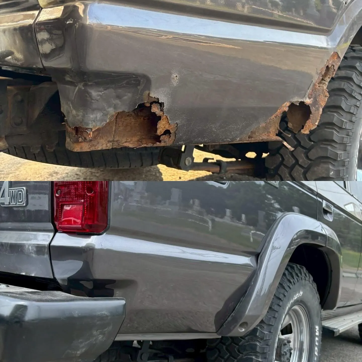 ランクル60 板金塗装✨ ランクル60板金塗装✨ランクル60のよく錆びるフロア、タイヤハウス、リアクウォーター下板金塗装しました😁👍#ランクル#ランクル60#ランドクルーザー#ランドクルーザー60#ランクル板金塗装#ランクル札幌板金…